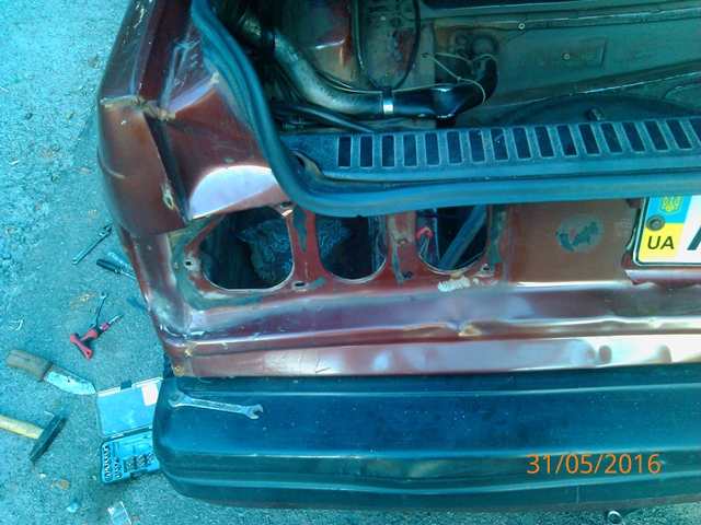 В общем купил лебедку начал тянуть задок за неделбку выровнял токо крышка багажника не нравицо вернее её левый кронштейн или как там утку ту зовут которой крышка к кузову крепится. я так и не долез до того места где к кузову крепится она)