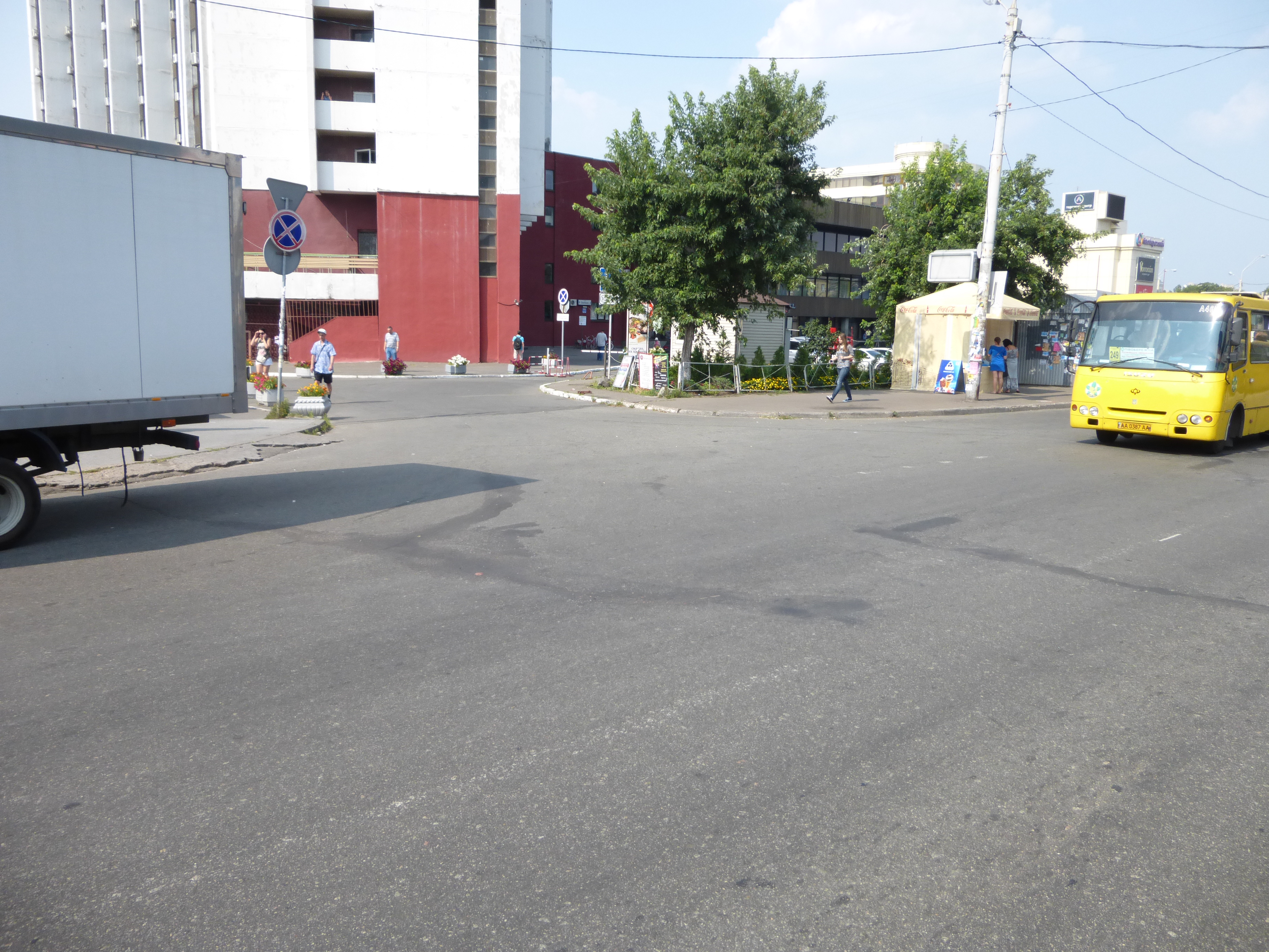 Судя по всему у водителя уже были ДТП. У меня водительский стаж 17 лет без аварий. В гостинице Турист видео мне сказали посмотрят на наличие, но даже если оно есть его дадут по запросу суда. Этот парень выезжал с парковки со стороны Туриста и объезжал таксиста, который и вызвался в свидетели, при этом полиция не составила протокол на него за неправильную парковку. Собственно этот бля...ский таксист и стал основной причиной почему этот Авео выехал сразу во вторую полосу. Вот его фото, только уже позже. Он даже на Гугль мапс на фото на этом месте...