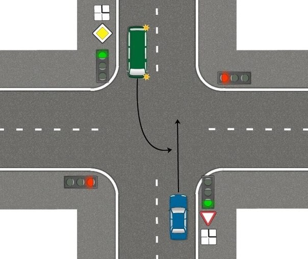 тебе смешно, а на троехе есть перекрёсток с такойж точно конфигурацией, и каждый раз пробуя проехать прямо на зелёный слышыш о себе много интерестного, от тех кто едет "по главной". я блять теперь там еду направо, и потом разворачиваюсь.