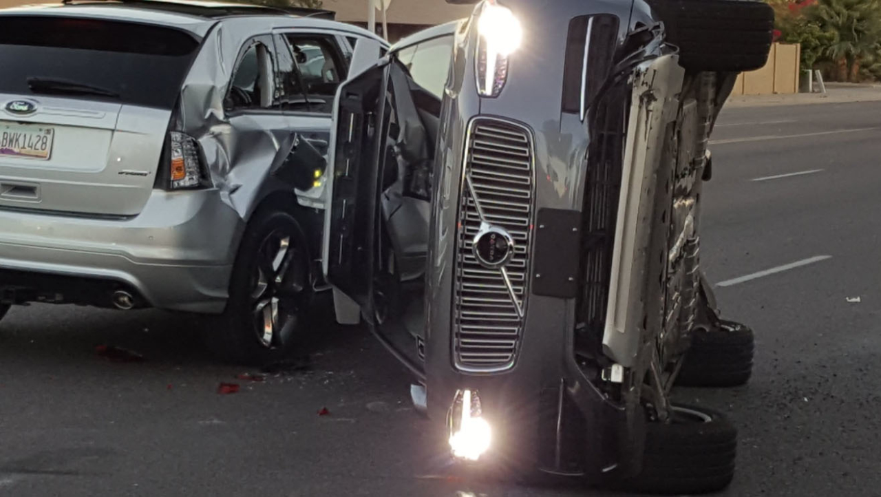 Сама авария, в результате которой самоуправляемый автомобиль Uber на базе Volvo XC90 перевернулся на сторону (фото выше), произошла в пятницу, 24 марта. К счастью, обошлось без человеческих жертв.