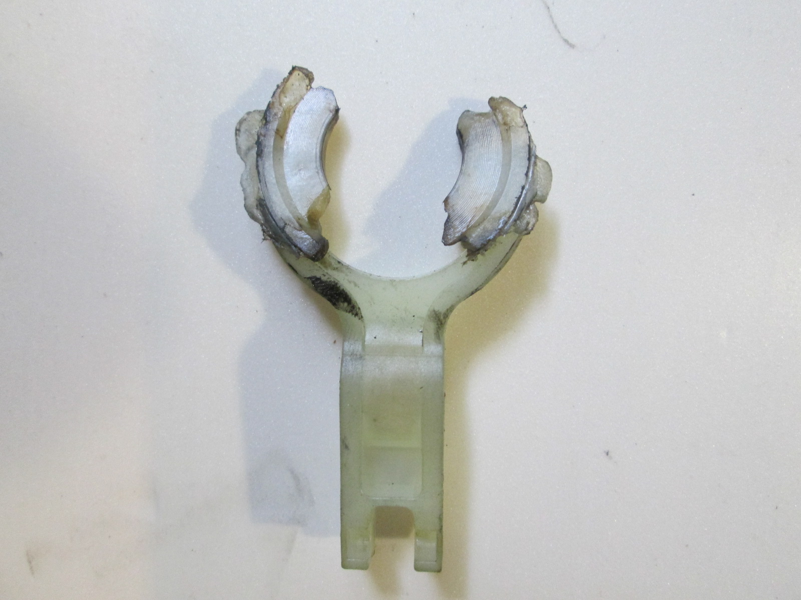 Лопнувший кронштейн. Видно трещину и самодельную вставку.