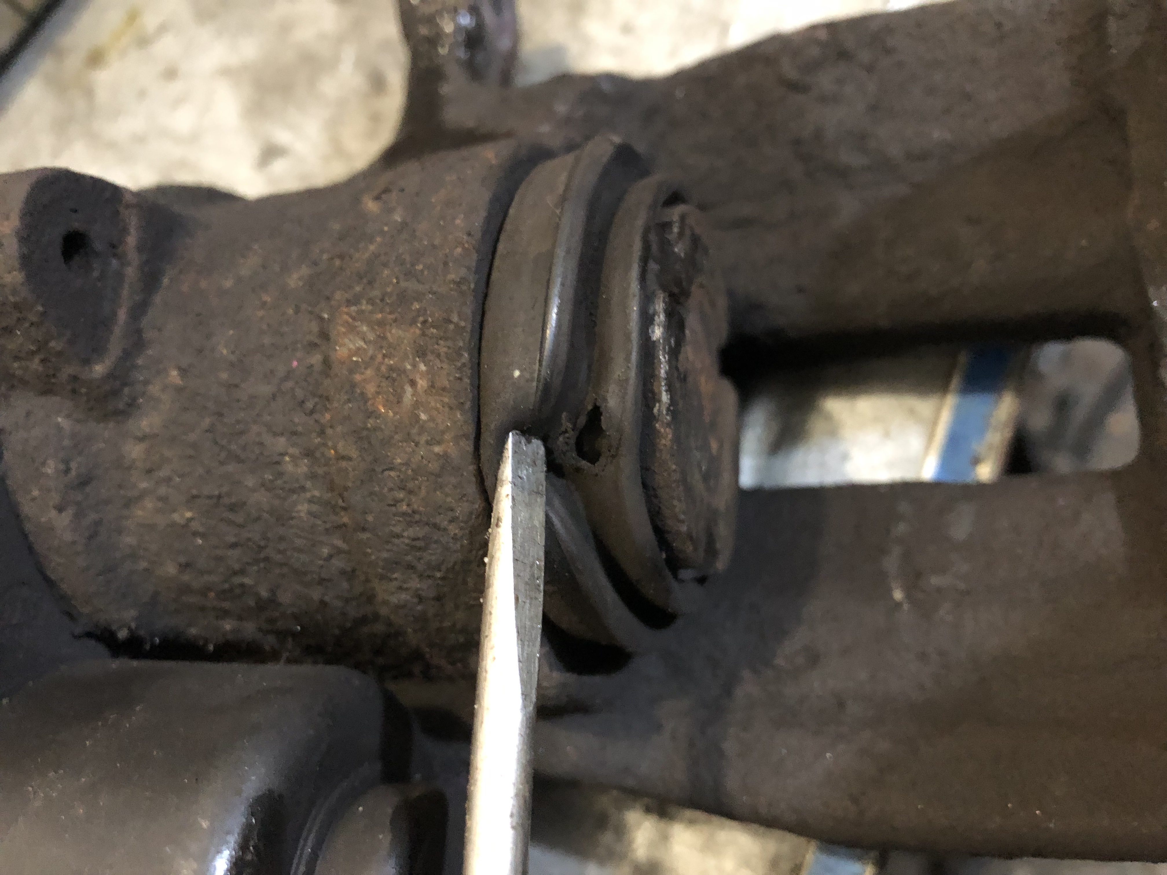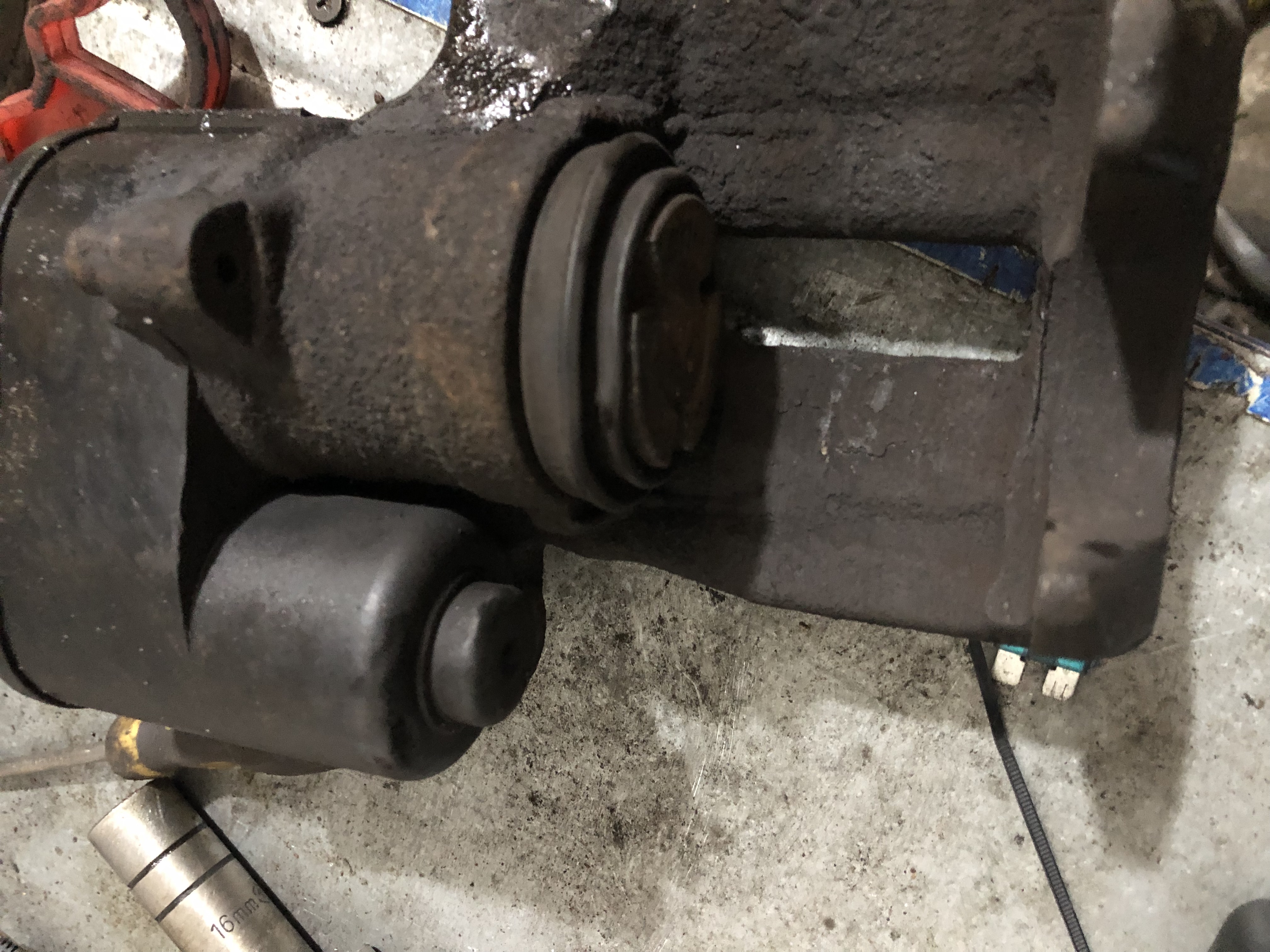 На цей раз виявляється пошкодження на захисному пильнику правого супорта.
