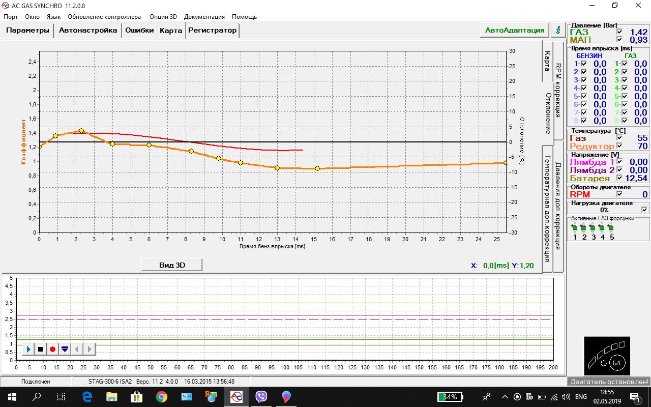 Без ОБД. Вернее обд через елмку, а остальное через программу стага. Ну и сильно помогла авто адаптация стаговская. А зенит и с обд и автоадаптпцией а выдает кривую, как бык поссал.