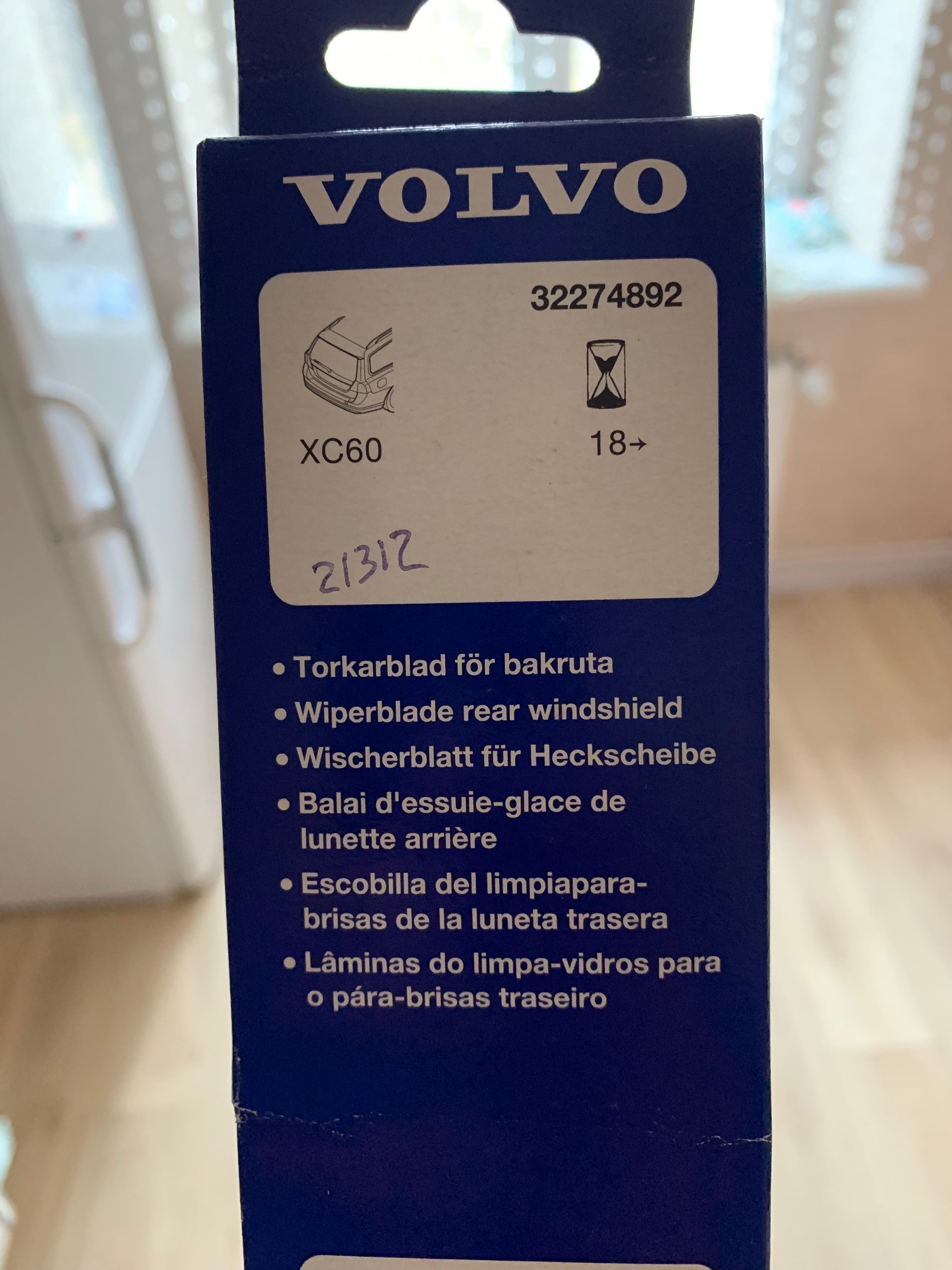 Ну и раз новое стекло, нужны новые дворники (нет, нужны сменные резинки, ибо в новой ХС60 форсунки омывателя прямо в дворнике) идут они комплектом, дорогие правда "Собаки" (да и вообще вольво после тойоты вся немного дорогая) 31490722, это комплект передних резинок, задний дворник 32274892.