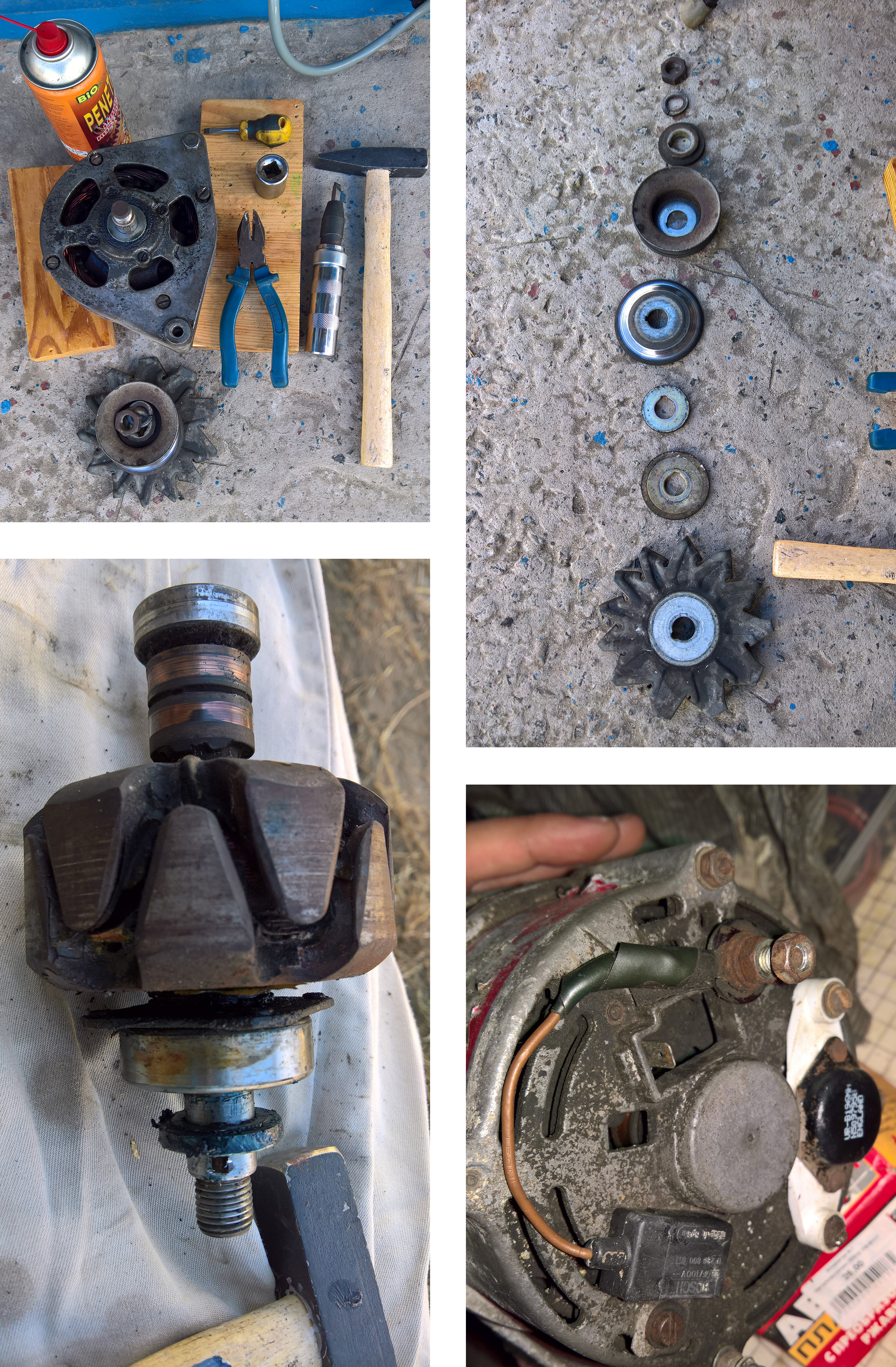 Но вот далее все пошло как по маслу (хвала съемнику!). Заменил оба подшипника, щеточный узел с регулятором и все шпильки. Контактные кольца прошлифовал наждачными шкурками чтобы убрать неравномерность выработки. Ну и покрасил, как же без этого (во первых это красиво).