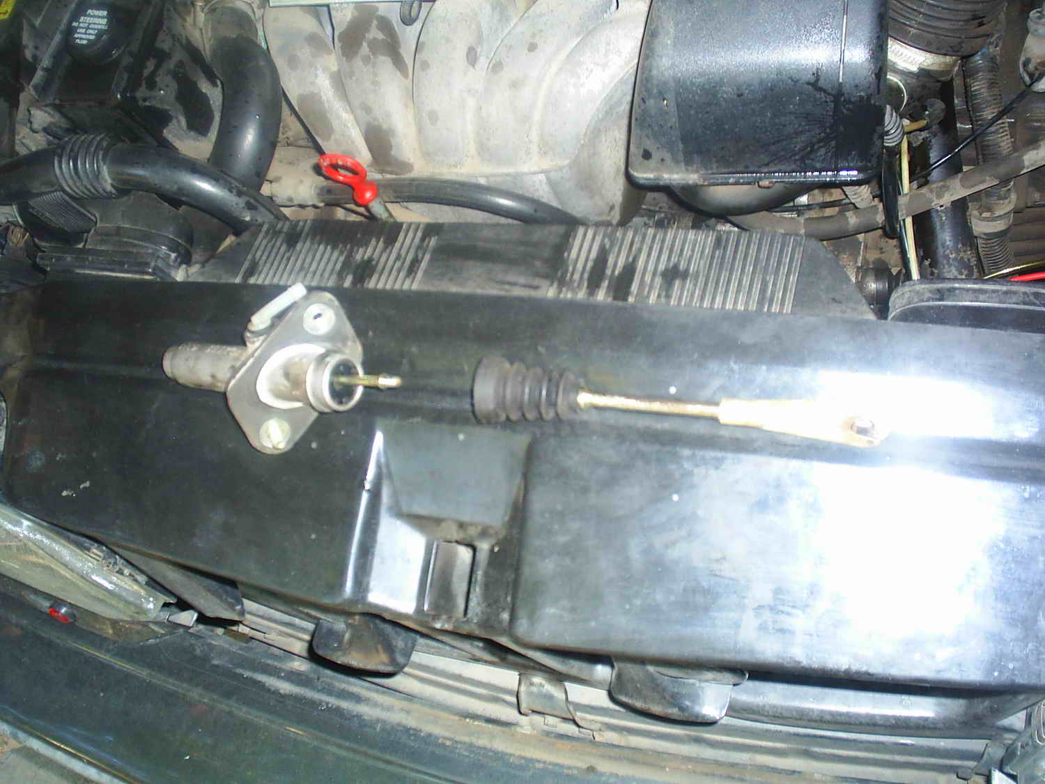 В общем, купил пол литра тормозухи типа DOT4, взял крышку и компрессор и почти всю её пролил через сцепление - типа промыл. Не полегчало. Понял, что придется снимать. Забросил Вадис подальше и начал рыться в книгах. А там все просто - 4 предложения: снять воздухан, крышку колен, открутить гайку и болт, вытянуть цилиндр. И ничего о вакуумном усилителе! Как написано, так и сделал. Спокойно вылезло мимо усилителя (не без секса, естественно, но...).